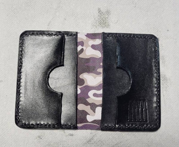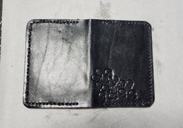 Votre Porte carte original en cuir naturel tannage végétal teinté noir extérieur tête de mort.