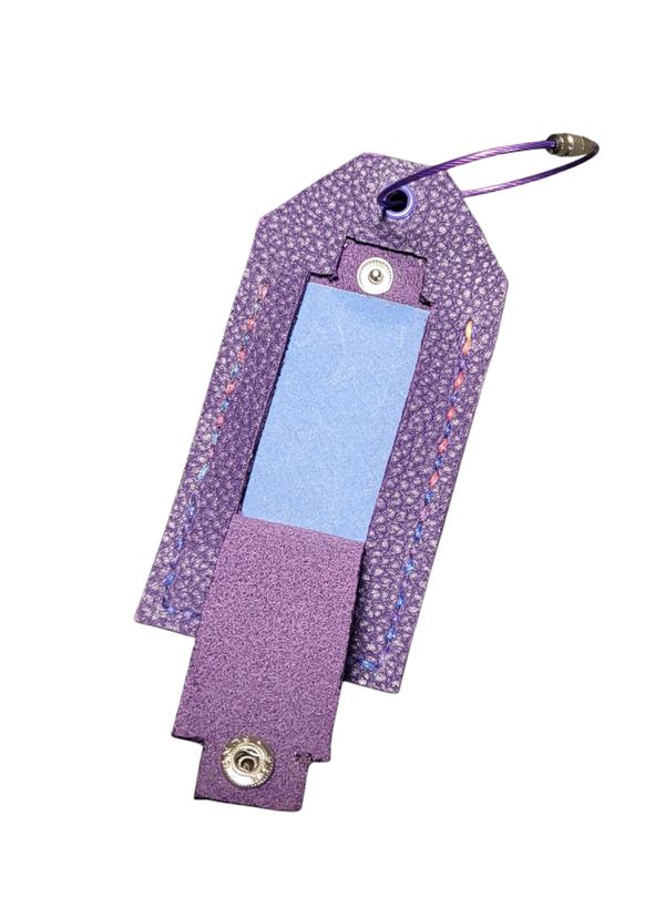 Votre porte étiquette personnalisée en cuir de qualité avec une attache en métal de couleur assortie pour plus de solidité.